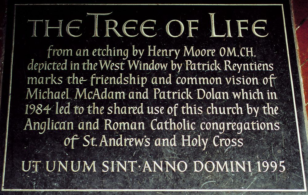 The window was dedicated by the former Archbishop of Canterbury, Lord Runcie of Cuddeston, at a special service on 30 July 1995 – what would have been Moore’s 97th birthday.