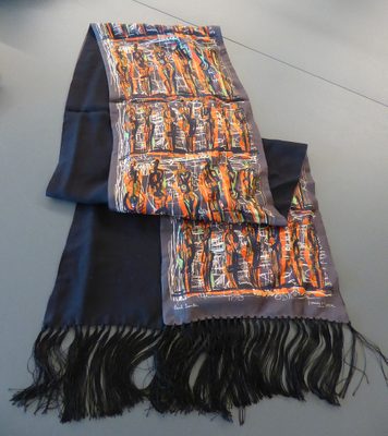 In total this part of our collection comprises over 150 individual textile items including: scarves, bags, t-shirts, hats, pillowcases, tea-towels, academic gowns, and clothing from two major fashion brands.