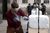 A new team was about to take over, in fact, as we were nearing the end of their hourly shift. One of them, wearing safety goggles and gloves, was explaining to a middle-aged couple who the performers were and what they were doing. “Is that your plot?” the woman asked, pointing to a vacant stand in the middle of a row of five marble blocks resting atop as many wooden plinths. He nodded. “You’d better get on with it, then,” the man jovially said. “Hammer on, hammer on.”