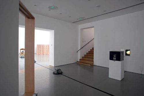 For the time being, though, the five speakers – placed at regular intervals, every third step – form an ascending line from the bottom of the shallow-stepped wooden staircase all the way to the glass door entrance to the gallery, symbolically channeling visitors inside. Designed by sound programmer Stephan Moore to send out sound in all directions as opposed to one, as is the case with ordinary loudspeakers, the sturdy-looking ‘hemisphere’ speakers are sculptural objects in their own right. When McCall originally conceived and made the work in 1972 at University College Cardiff, which had an advanced electronic music studio, nothing quite so sophisticated was available to him. He constructed a synthetic movement of white noise, a cloud of roaring sound, to be played on two pairs of stereo speakers disposed on each end of a room.