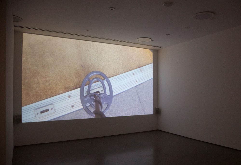 I am wide of the mark, as it turns out. But who could fathom that the artist’s silent film would be made using a metal detector? Metal detectors are not known for being silent; and yet that seems to be precisely Floyer’s point. Part of the object’s very identity is the familiar beep – something many of us are likely to associate with going through airport security rather than treasure hunting or mineral prospecting. This sound, paradoxically, will be edited out of the work.