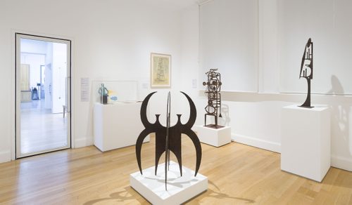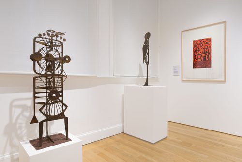 The display features three of Altdorf’s steel sculptures, along with a selection of his woodcuts and prints. These show both the strength of Altdorf’s design and printmaking skills, and the clear influence of the British artists he met during his time in the UK.