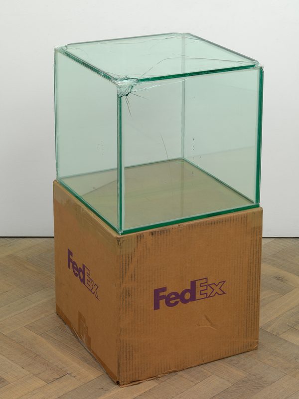 For nine years, Beshty had glass boxes made to the precise dimensions of Fedex’s copyrighted shipping boxes (essentially the corporate ownership of an empty space). The boxes were then sent through the mail and the inevitable damage, along with the tracking details, formed the artwork.