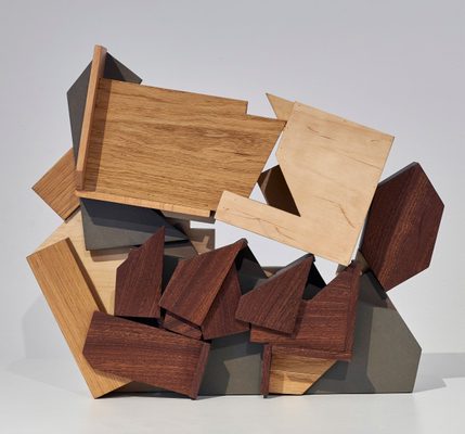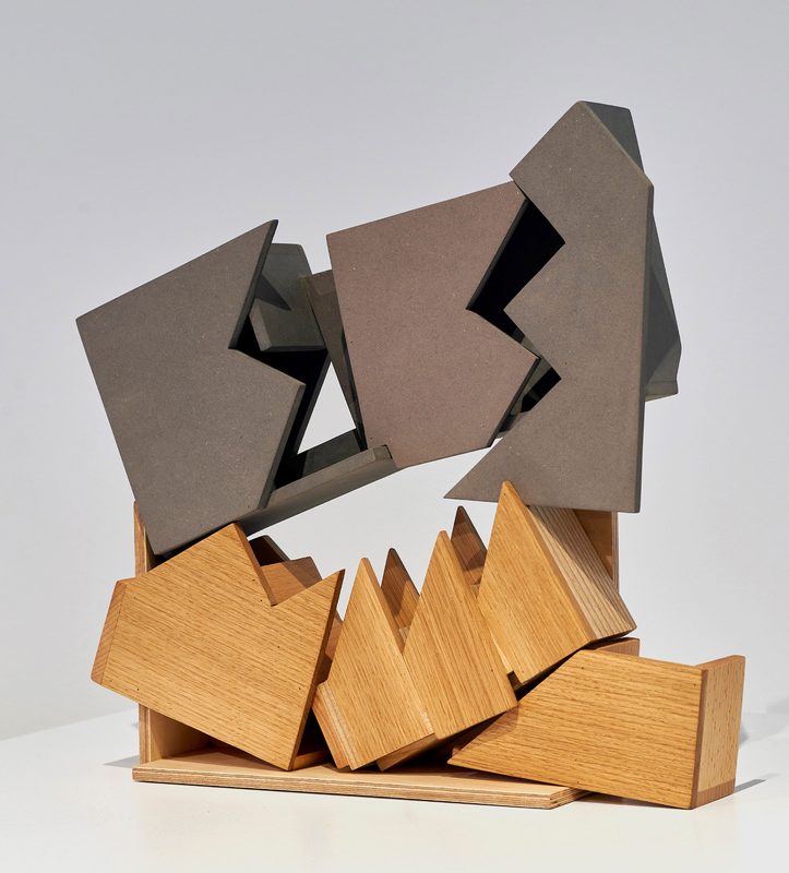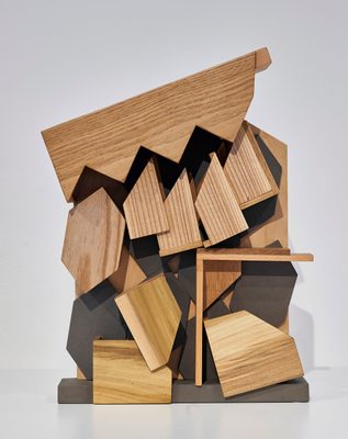 Revisiting the series in 2020, Ackerley has remade the sculptures using a range of woods and building materials: the shift to more stable materials reflects his recent move to a more stable studio space.