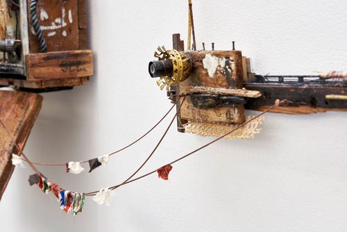 All of the sculptures seen here reflect contemporary themes of displacement, whether that be through the peripatetic lifestyle of the contemporary artist or the enforced population movement of the refugee. The work is provisional and contingent, and is highly adaptive to new and changing circumstances – much like the artists themselves.