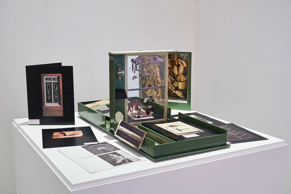 Duchamp initially had twenty ‘luxury editions’ of these sets fabricated during the late 1930s as it became apparent that he would have to leave Paris. The cases fold out to reveal small-scale reproductions of Duchamp’s work, including Fountain, Nude Descending a Staircase and The Large Glass, along with tiny versions of his readymades to form a miniature museum of his work.