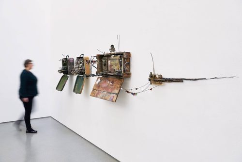 Hannelore Baron’s box constructions, made from scraps of wood, fabric and found materials, stem from the artist’s traumatic childhood in Germany. Born in 1926, she fled Germany in 1939, ending up in New York in 1941. With no formal fine art training and no knowledge of developments in the art world, she began making collages and boxes, which became increasingly politically engaged throughout the 1960s and 1970s. The materials are damaged and the forms are enigmatic and secretive – analogous to the artist and her experience of the world.
