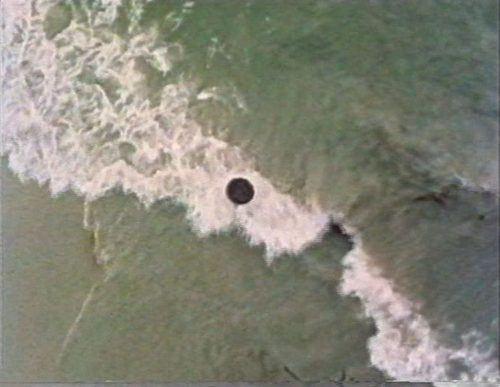 Filmed on a beach in the Netherlands for Gerry Schum’s famous TV exhibition Land Art, Flanagan buried a hollow cylinder in the sand during a rising tide and filmed the gradual disappearance of the ‘hole’ as the water eventually covered it.