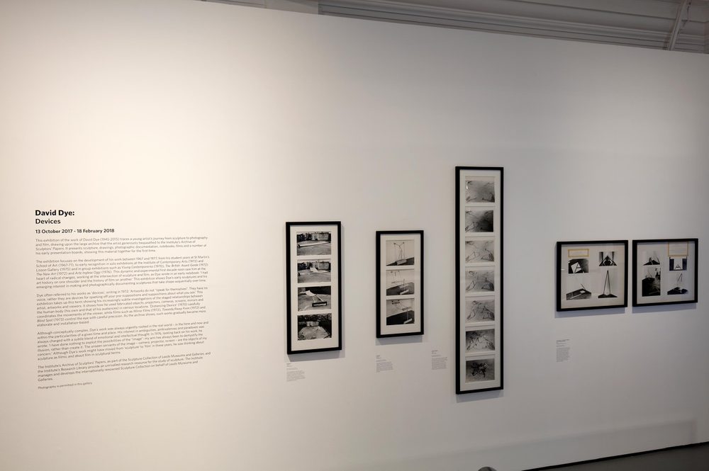 The archive of David Dye (1945-2015), which the artist generously bequeathed to the Henry Moore Institute Archive of Sculptors’ Papers, comprises sketchbooks, drawings, films, presentation boards, photographs, negatives, project files and exhibition catalogues. This exhibition shows how he developed his interests out of sculpture into photography and film.