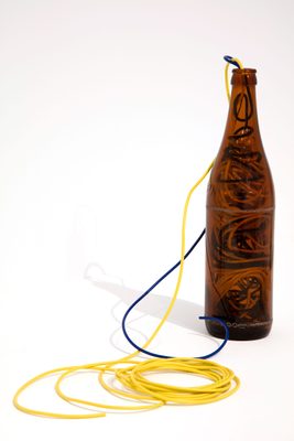 In 1962 he made The Yamanote Line Incident, in which he packed the three-and-a-half kilometre long sculpture String into a checked travel bag and let this long, lumpy rope snake from the privacy of his bag onto the platforms and carriages of the looping Yamanote Line, a central Tokyo commuter route. This expansion of string was contrasted by work in which he would contract it into the confined spaces of fizzy-pop and beer bottles.