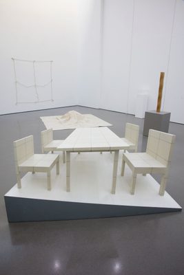 The materials Takamatsu chose were always ready at hand. Sometimes they were tangible – everyday objects such as bottles, cloth, string, stones or furniture. Other times they had a strong association to sculptural traditions – such as marble, wood, concrete and iron.