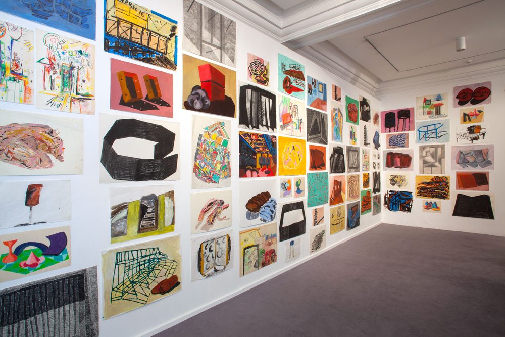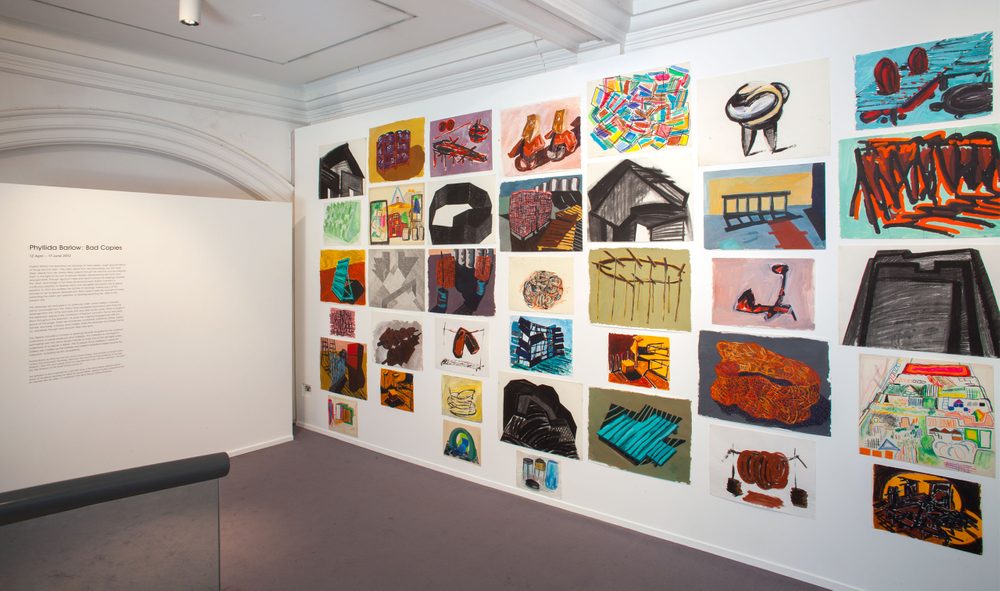 Describing them as ‘bad copies’, Barlow’s drawings are often derived from her environment, but never drawn from life; they range from swift biro and pencil sketches in notebooks and diaries, often appearing beside domestic reminders and lists, to more heavily worked acrylic drawings and oil paintings, which experiment with surface textures as well as colours, forms and arrangements.