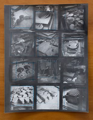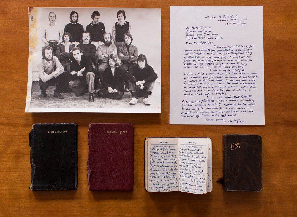 Much of the material deposited in the archive relates to Evans’ fellowship with the British Steel Corporation between 1969 and 1971, as part of a scheme organised by the Artist Placement Group (APG). The APG placed artists in government, commercial and industrial organisations in the hope that artists could bring new ways of seeing and thinking to their host organisation. During this period Evans travelled across the UK visiting steel works and photographing objects.