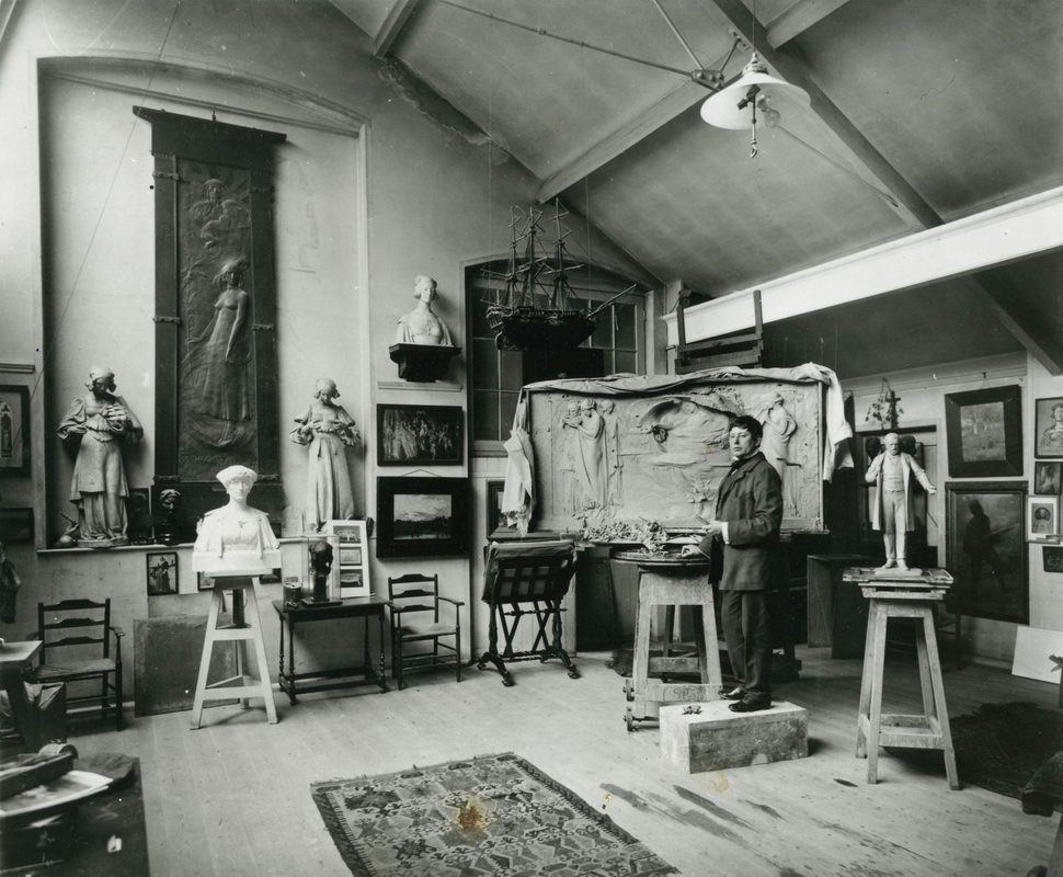 The first archive collection consists of around 400 photographs of Frampton’s sculpture, jewellery, medals and design work. Many of these show his studio and the sculptures before they were cast or sold. The collection is strong on Frampton’s portrait busts, many of which are in private collections, and Royal commissions. The printed material includes the official programme for the unveiling of his monument to Queen Victoria in Leeds, 1905.