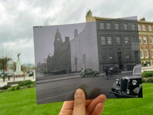 View of the Henry Moore Institute from Cookridge Street in 2023/1938. Vintage photo by kind permission of Leeds Libraries, leodis.net. Photo: Min Young Lim.