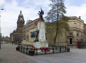 Leeds War Memorial is erected on City Square (relocated to the South of Leeds City Art Gallery on the Headrow in 1937). The memorial is dedicated to those fallen in World War I and was designed by Charles Henry Fehr.