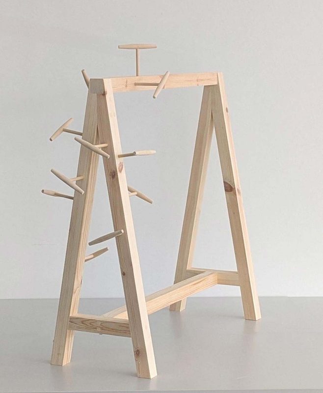 These simple-looking sculptures have a sense of craft and workmanship, using a minimalist vocabulary of curved, rounded cylindrical, and conical forms. They are created and developed using accumulative and labour-intensive processes, often using materials sourced from skips and workshop off-cuts. These recycled materials are cleaned and repurposed, locked together in an engineered precision.