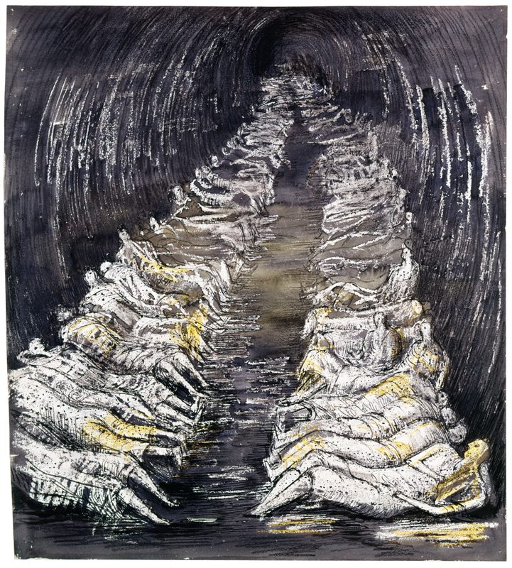 Drawing in the Dark is the largest exhibition to date of Moore’s coalmining drawings, completed in 1942 for the War Artists’ Advisory Committee.