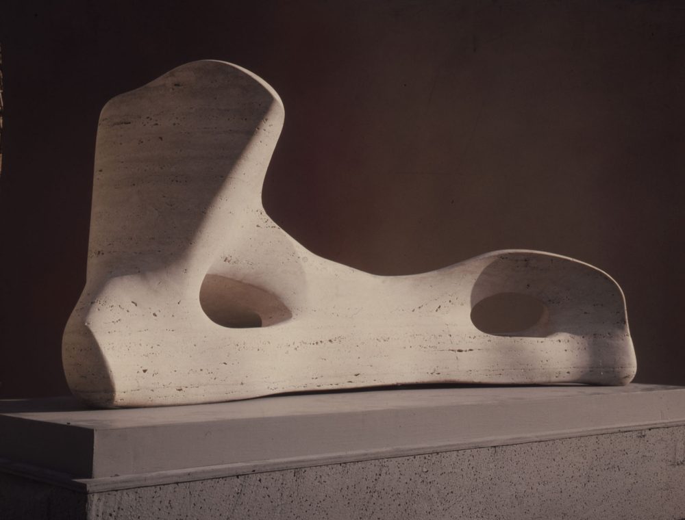 Some of the works by Moore illustrate his fragmentation of the figure to recreate it as a metaphoric landscape, in which knees and breasts become mountains and valleys, and folds of drapery become the ripples of a shoreline or the encrusted surface of the earth. Meanwhile, O’Keeffe’s compositions of bands of colour and light evoke the passage of time and movement over the landscape.