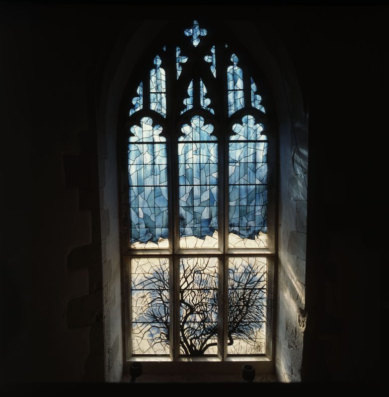 After Moore’s death, the trustees of the Henry Moore Foundation selected Trees V: Spreading Branches 1979 (CGM 551) to be reproduced in stained glass by Patrick Reyntiens OBE, in partnership with his son, John, as a memorial window in the Parish Church of St Andrew, Much Hadham.