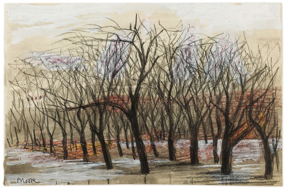 Trees provide an interesting natural parallel to Moore’s sculpture, and are also the subject of many drawings that Moore produced in the latter part of his career.
