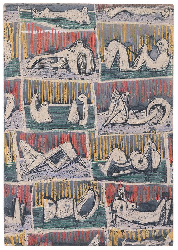 Textile Design: Reclining Figures 1937, HMF 1310, pencil, wax crayon, watercolour, pen and ink