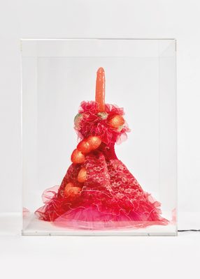 The title of the work is Ex Voto, and it was made by the artist Renate Bertlmann, who was born in Vienna in 1943. Bertlmann is a leading Austrian feminist avant-garde visual artist whose work focuses on the issues surrounding themes of sexuality, love, gender and eroticism within a social context.