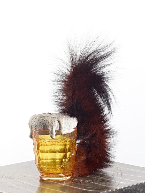 (C) It’s such a cute word and it’s a really cute object. I’m not sure I like calling artworks cute but this one genuinely is. It’s a half pint beer glass with a squirrel’s tail for a handle. They’re two completely unexpected objects joined together.