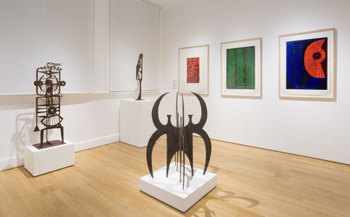 The display features three of Altdorf’s steel sculptures, along with a selection of his woodcuts and prints. These show both the strength of Altdorf’s design and printmaking skills, and the clear influence of the British artists he met during his time in the UK.