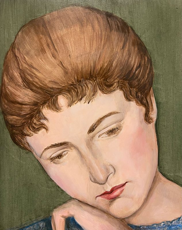 “I’m working from women’s depictions of women (often a friend or peer) with their eyes downcast or closed or looking away. I enjoy the ambiguity implicit in both the signalling of empowered absorption or self-containment alongside a reading of social conformity and female modesty.”