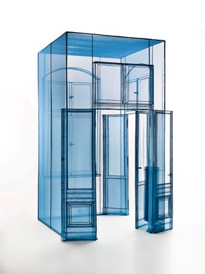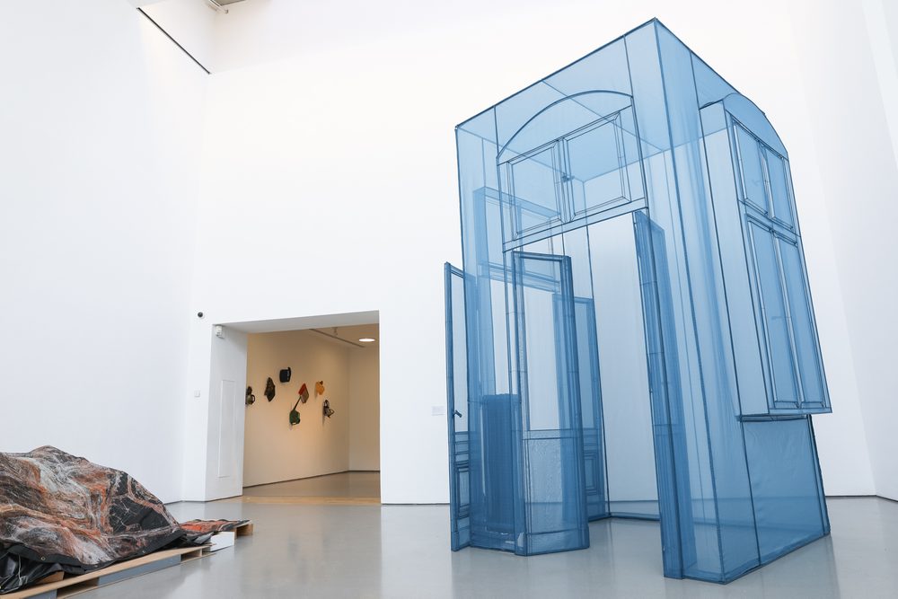 Do Ho Suh’s fabric sculptures reproduce architectural features and sometimes entire buildings from memory. These are places in which the artist has lived in the past, and which now travel as translucent replicas.