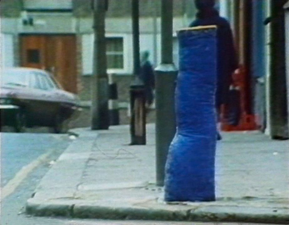 In protest against Camden council’s plans to erect a large number of permanent bollards on street corners, Flanagan, assisted by his friend Andrew Dipper, hired a van and with a concrete mixer and a sewing machine drove around creating his own versions using cloth bags filled with cement.