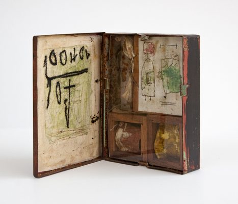 Hannelore Baron’s box constructions, made from scraps of wood, fabric and found materials, stem from the artist’s traumatic childhood in Germany. Born in 1926, she fled Germany in 1939, ending up in New York in 1941. With no formal fine art training and no knowledge of developments in the art world, she began making collages and boxes, which became increasingly politically engaged throughout the 1960s and 1970s. The materials are damaged and the forms are enigmatic and secretive – analogous to the artist and her experience of the world.