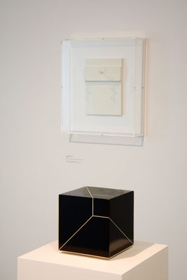 The earliest work in our exhibition is a 1961 sculpture formed of a mass of lacquered wire ‘swelling snowman-style’, to use the artist’s words, from a central point. Takamatsu became fascinated by the possibility of a line of string when divorced from function, describing it as an example of ‘minimal materiality’.