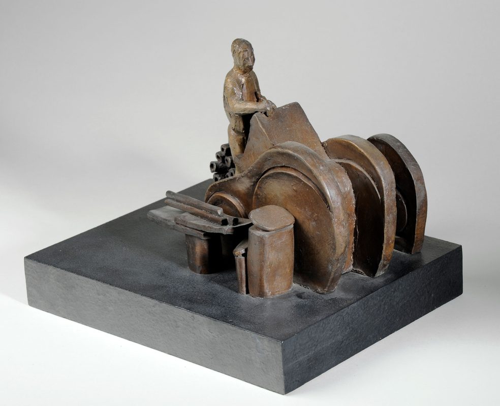 Koenig’s dedication to making figurative sculptures stands as a counterpoint in a period of post-war sculpture populated by artists concerned with abstraction as much as figuration. Her characteristic use of compressed perspective and the sense of familiarity between the workers and their machines gives us an intimate view on working-class life in mid to late century Britain.