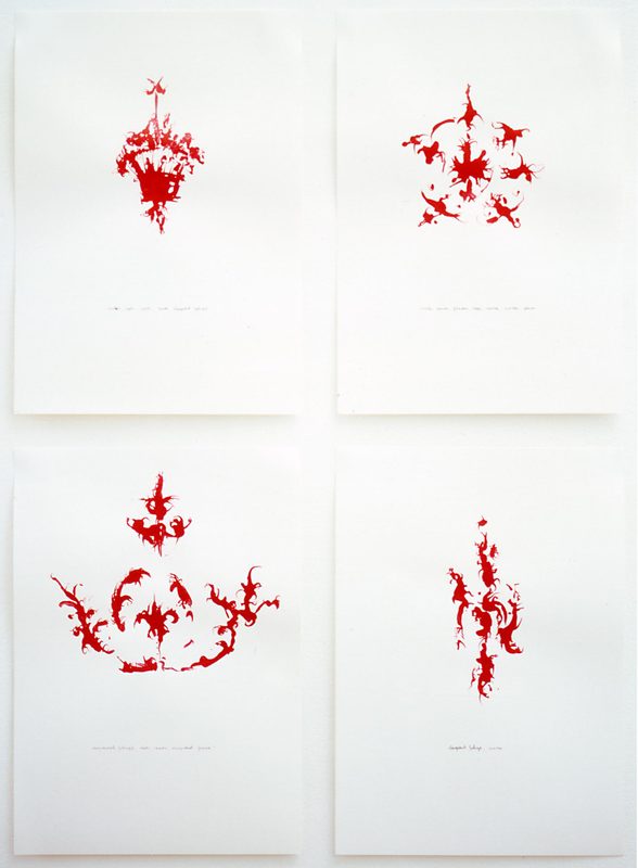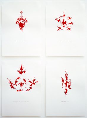 This new work, made especially for the Institute, stems from 1995 when Cooke attended a function in the ballroom of the Irish Embassy in London. The ornate gilded stucco she saw decorating the walls of the room was later the focus of her drawings in red paint in which modelled details became abstract forms. These drawings eventually led to Ballroom (ornament).
