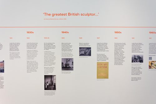 Over the bridge to Leeds Art Gallery, The Mezzanine features a  permanent display detailing the rich history of sculpture in Leeds. We also curate exhibitions in the Archive Gallery below that explore the history of British sculptors.