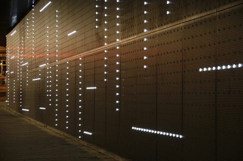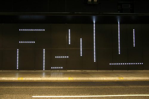 A Light and Sound Transit was the work of internationally renowned artist Hans Peter Kuhn, made for the East Wall of the tunnel. Computer controlled and comprised of 3200 LED lights that spanned the length of the tunnel, it would generate a new abstract artwork of light each day.