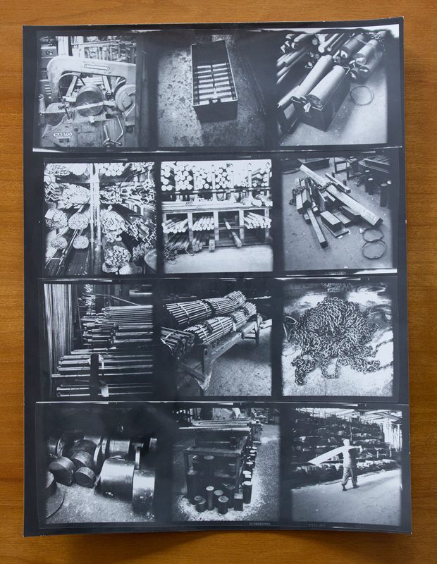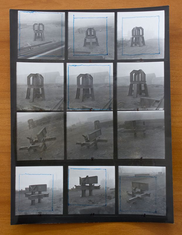 Much of the material deposited in the archive relates to Evans’ fellowship with the British Steel Corporation between 1969 and 1971, as part of a scheme organised by the Artist Placement Group (APG). The APG placed artists in government, commercial and industrial organisations in the hope that artists could bring new ways of seeing and thinking to their host organisation. During this period Evans travelled across the UK visiting steel works and photographing objects.