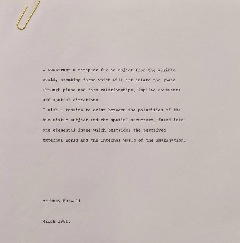 Anthony Hatwell (1931-2013) studied art under David Bomberg at the Borough Polytechnic, now London South Bank University. Bomberg’s teaching was said to have imposed strict restraints for painting, and so Hatwell found freedom in creating his own style in sculpture, avoiding superfluous detail or decorative features.